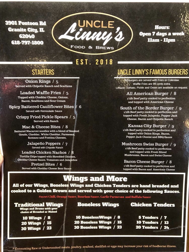 For inquiries or to place an order, give them a call at (618) 797-1800. Experience the joy of great food and company at Uncle Linny’s—you won’t be disappointed!